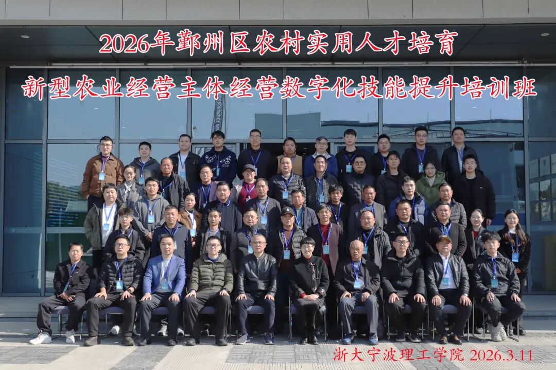 3月27日,2026年鄞州区农村实用人才培育新型农业经营主体经营数字化技能提升培训班顺利落幕。本次培训共分3期,由鄞州区农业农村局主办、浙大宁波理工学院继续教育学院承办,来自鄞州区各镇(街道)的新型农业经营主体负责人、农业生产一线骨干等130余名学员齐聚我院,通过系统化教学,全面提升农业数字化实操与运营能力。