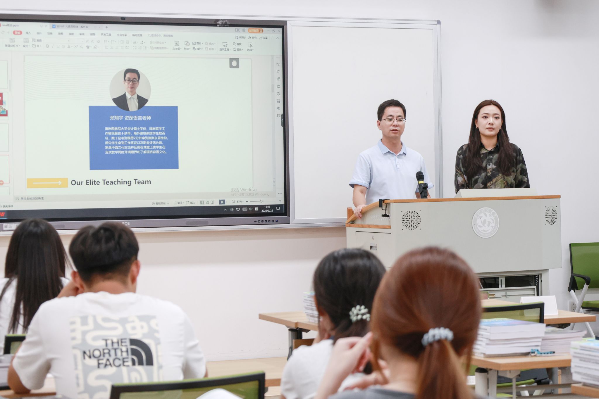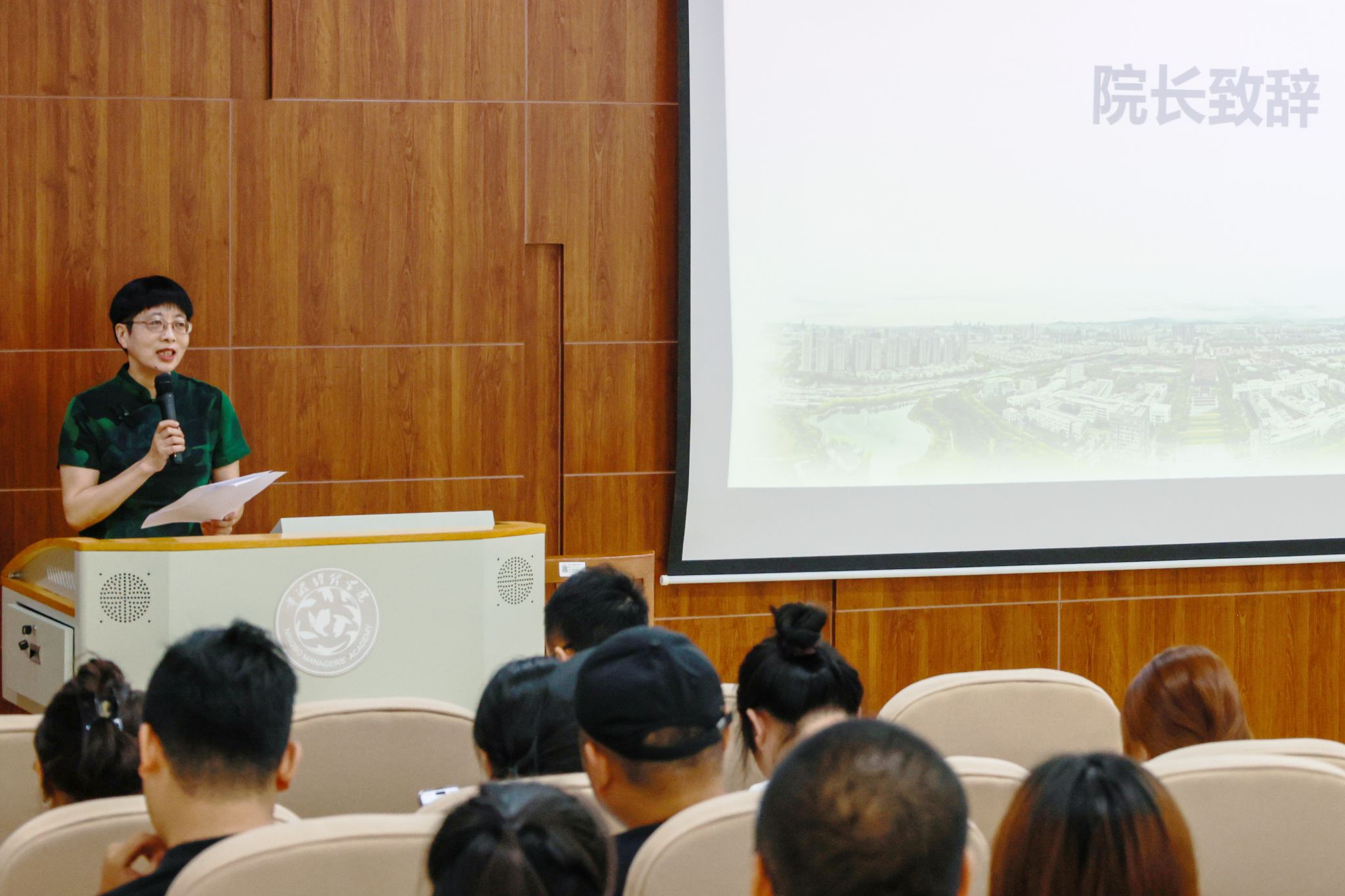 吴春在开班典礼上对新生致以热烈欢迎。为帮助来自省内外的新生尽快适应新环境,她详细介绍了学校及学院的发展历程和办学成果,并对新生提出四点期望:一是志存高远,成为有格局、有担当、有责任感的新时代青年;二是潜心向学,锤炼自主学习与终身学习的能力;三是修身立德,恪守学术规范与道德底线;四是拥抱变化,在持续的体验与反思中认识自我、突破自我。此外,吴春还为语言成绩优异的新生颁发入学奖学金,既是对获奖新生的肯定,也对全体新生的激励。