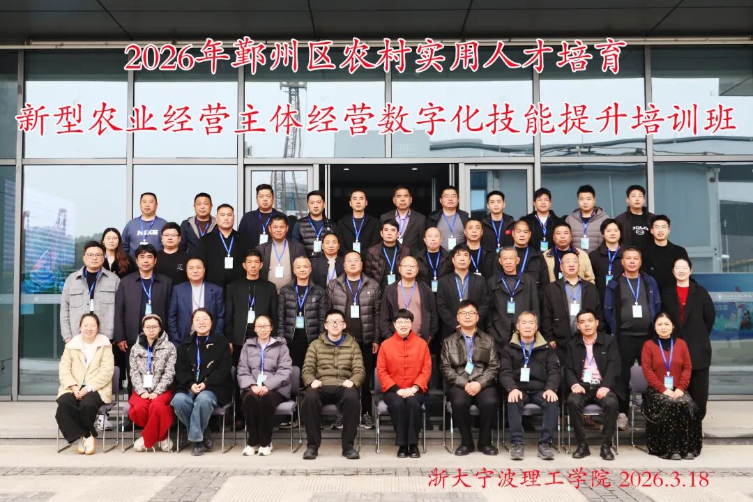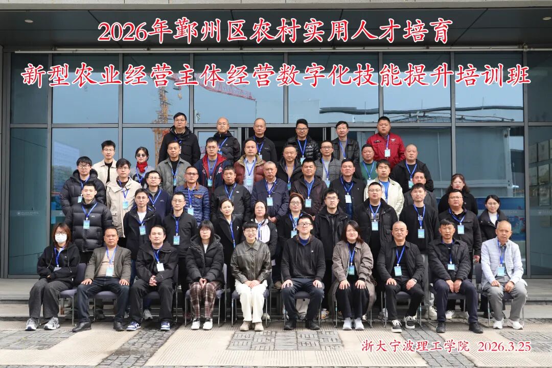 3月27日,2026年鄞州区农村实用人才培育新型农业经营主体经营数字化技能提升培训班顺利落幕。本次培训共分3期,由鄞州区农业农村局主办、浙大宁波理工学院继续教育学院承办,来自鄞州区各镇(街道)的新型农业经营主体负责人、农业生产一线骨干等130余名学员齐聚我院,通过系统化教学,全面提升农业数字化实操与运营能力。