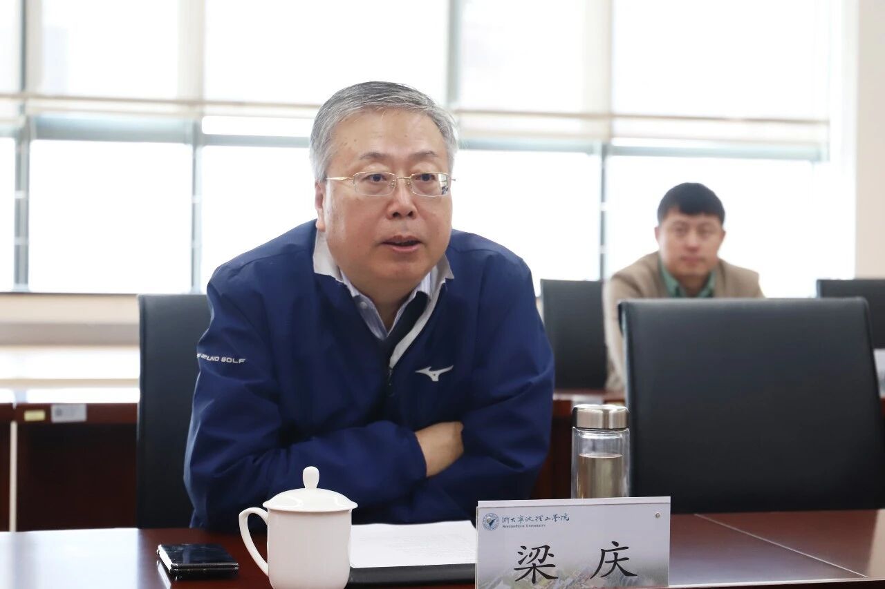 座谈会上,张宇泓代表学院对梁庆一行表示热烈欢迎,全面介绍了浙大宁波理工学院的办学概况,并重点阐述了我院在课程建设、技能培训、产教融合等方面的办学成果。